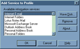 5. In the Add Services to Profile dialog box, highlight "Internet Email" if not already highlighted and press the "OK" button.