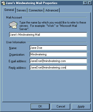 Instructions for configuring Microsoft Outlook 98 or Outlook 2000 to check your Mindwatering mail account.