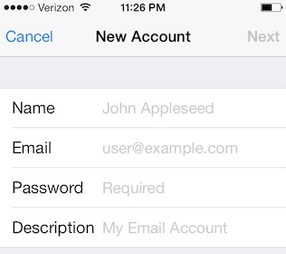 7. The "New Account" screen has been updated with a new sections "Incoming Mail Settings" and "Outgoing Mail Settings".
