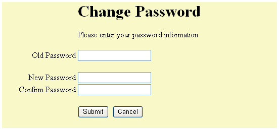 3. Re-enter your existing password in the "Old Password" field. Enter you new password in the "New Password" and "Confirm Password". Press the "Submit" button.