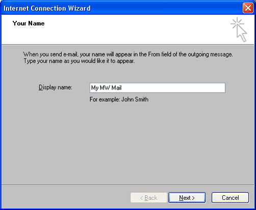 5. Enter your name (or anything that identifies this mail account to you. e.g. My MW Mail). Click the "Next" button.