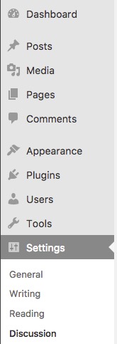 2. On the left menu of your Dashboard, expand the Settings section, and click Discussion. This displays the Discussion Settings page.